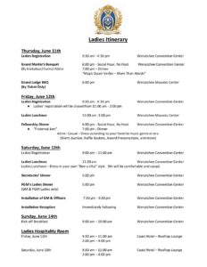 Deputy Grand Master’s Itinerary